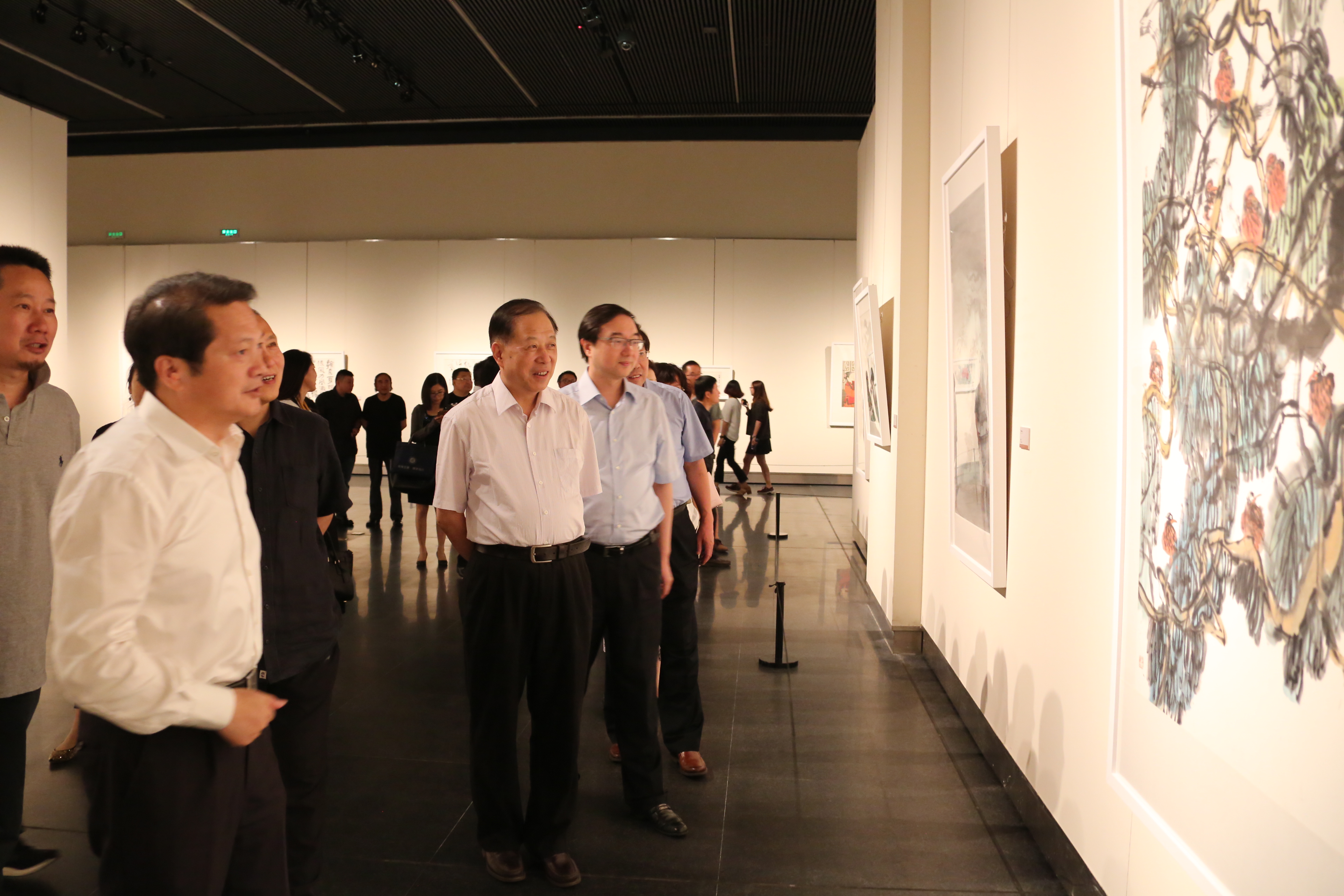 开幕仪式后,众多前来参观的领导和嘉宾们参观了画展,并表示,此次书画展,凝聚和体现了江苏文化系统书画家的爱国之心和对灾区百姓的手足之情;凝聚和体现了苏豪控股集团及旗下爱涛文化集团热心公益、回报社会的担当精神和责任意识;也凝聚和体现了文化厅机关和直属单位干部职工风清气正、无私奉献、团结协作的团队精神和工作作风。
